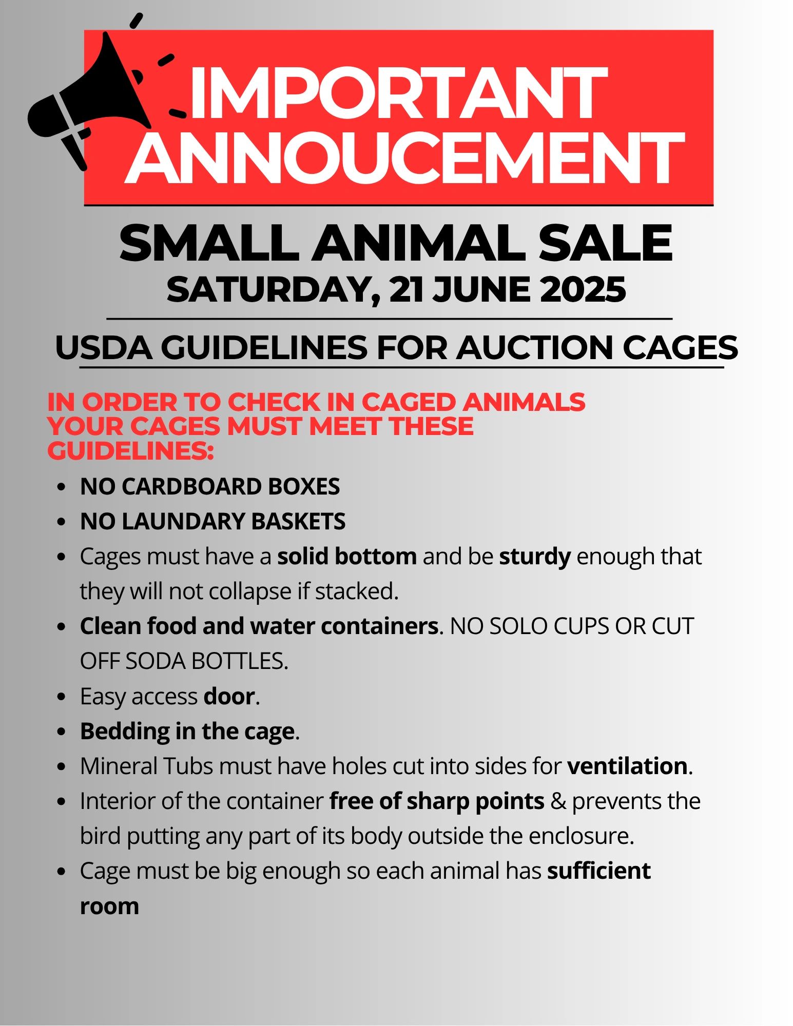 - Small Animal Sales October 4th, November 15th & December 20th.
